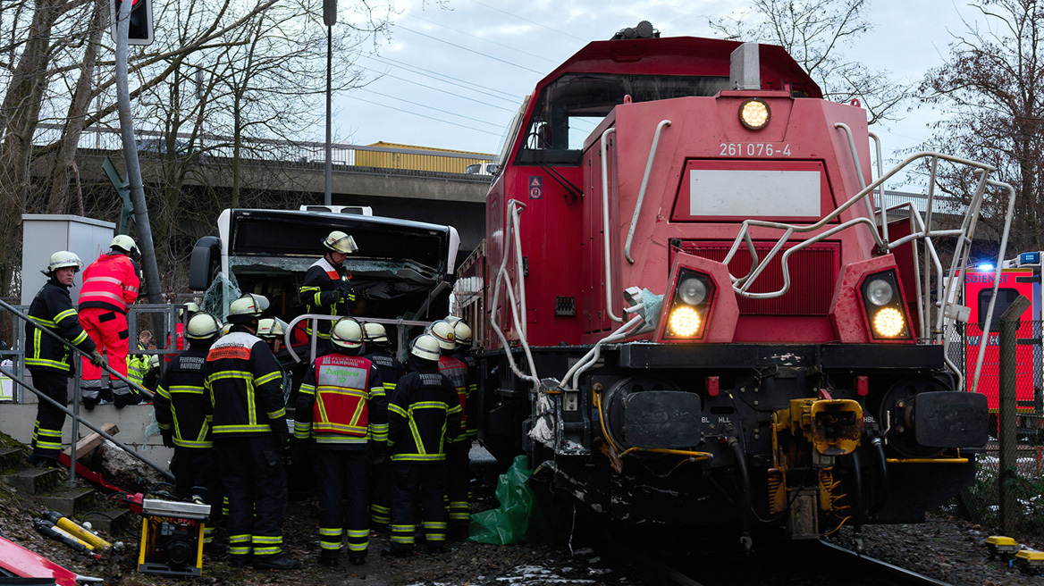 Eén persoon is omgekomen en tien anderen raakten gewond nadat een bus en een trein in botsing kwamen in de haven van Hamburg. Alle slachtoffers zaten in de bus, waarvan één persoon ter plaatse overleed. De chauffeur van de bus werd als laatste bevrijd omdat hij bekneld zat. De machinist van de trein raakte niet gewond bij het ongeval.