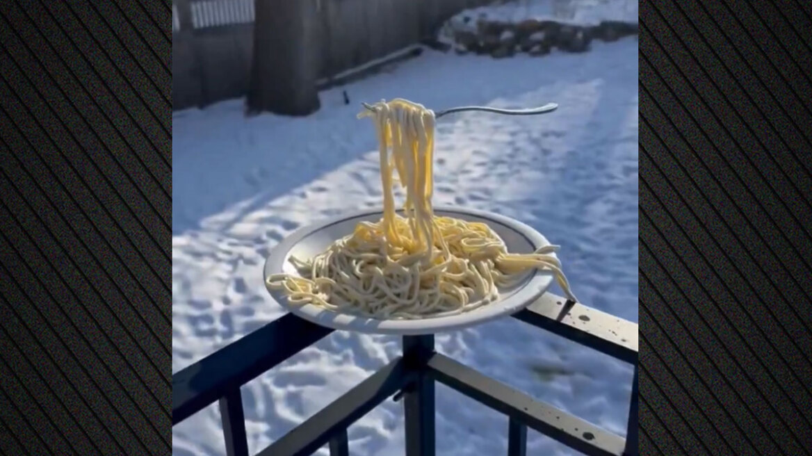 Spaghetti bevriest in de lucht tijdens extreme kou in Minneapolis